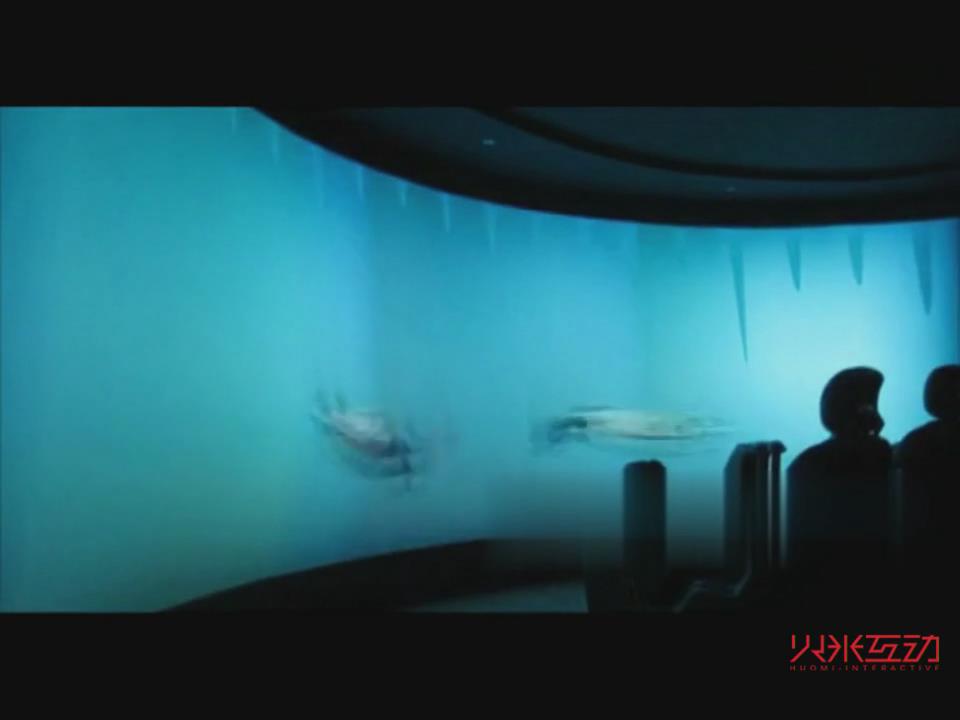 4、海洋模擬:在海底世界水下探險時,有機器控制的泡泡在廳中飄蕩,呈現出神秘的探險氣氛。